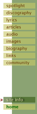on the left to look around. . . . browser blah blah blahThis site should function in any browser, and should look good in version 4 or later of IE and Netscape. . . . perpetratorsCurrent design and upkeep: sibsite@earthlink.net. Everything here is subject to change, so bring on the suggestions. . . . acknowledgementsPaul Mallet offers his thanks to the following people for helping out with the information provided here: Jennifer Albert, Bruce Beatus, Lee Chew, Robert Corbett, Jan Creelman, Peoria Fontaine, Clint Hawks, Brad Hutchinson, Paul Marko, John Miller, Larry Rose, Ross Van Woert, Joshin Yamada, Ian Young, all the members of the siblings electronic mailing list, and of course, Jane Siberry. A special thank you to Jeff Wasilko for hosting No Borders Here on SMOE. |